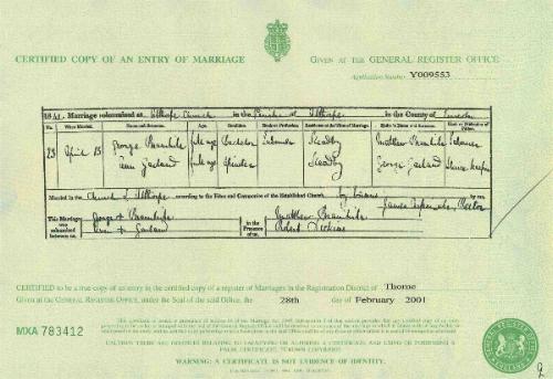 Note: This Marriage Registration shows that George was a Labourer when